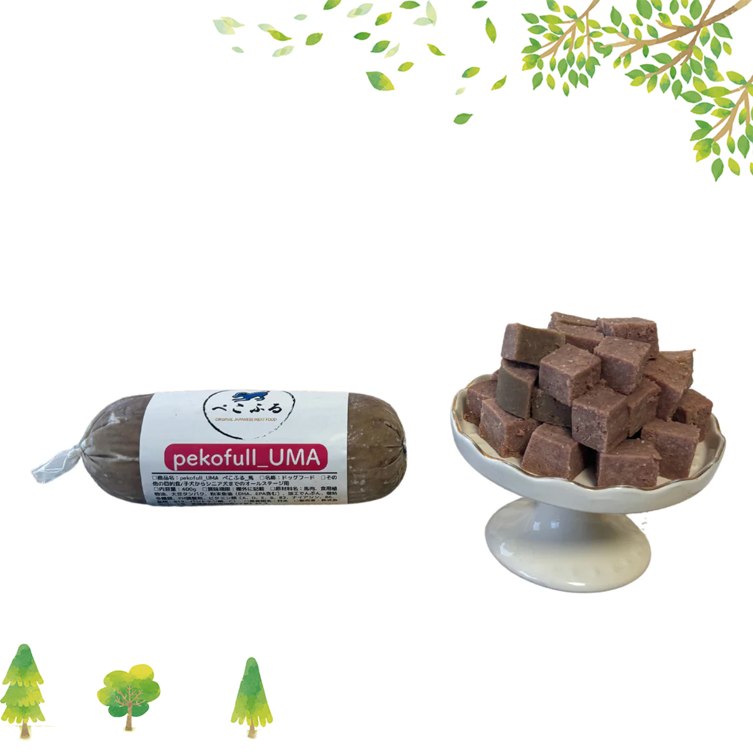【原材料名】 【pekofull_TORI】 鶏肉、大豆タンパク、食用植物油脂(パーム油)、粉末魚油(DHA、EPA含む)、加工でんぷん、増粘多糖類(オオバコ科外皮)、PH調整剤、ビタミン・ミネラル類(ビタミンA,D,E,B1,B2,ナイアシン,B6,葉酸,B12,パントテン酸CA,C) 【pekofull_UMA】 馬肉、大豆タンパク、食用植物油脂(パーム油)、粉末魚油(DHA、EPA含む)、加工でんぷん、増粘多糖類(オオバコ科外皮)、PH調整剤、ビタミン・ミネラル類(ビタミンA,D,E,B1,B2,ナイアシン,B6,葉酸,B12,パントテン酸CA,C) 【pekofull_SIKA】 鹿肉、でんぷん、大豆タンパク、食用植物油脂(パーム油)、デキストリン、さとうきび抽出物、粉末魚油(DHA、EPA含む)、加工でんぷん、増粘多糖類(オオバコ科外皮)、PH調整剤、ビタミン・ミネラル類(ビタミンA,D,E,B1,B2,ナイアシン,B6,葉酸,B12,パントテン酸CA,C)